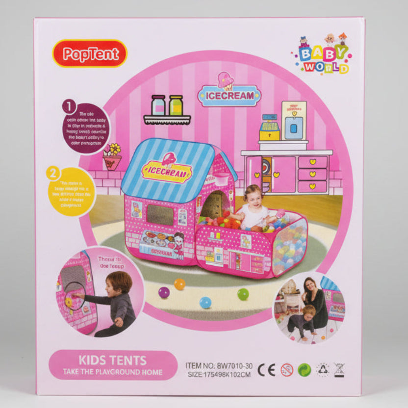 Tent 3-in-1 Kids Ice Cream Shop Play Tent with Ball Pit & Basketball Hoop - Indoor Playhouse